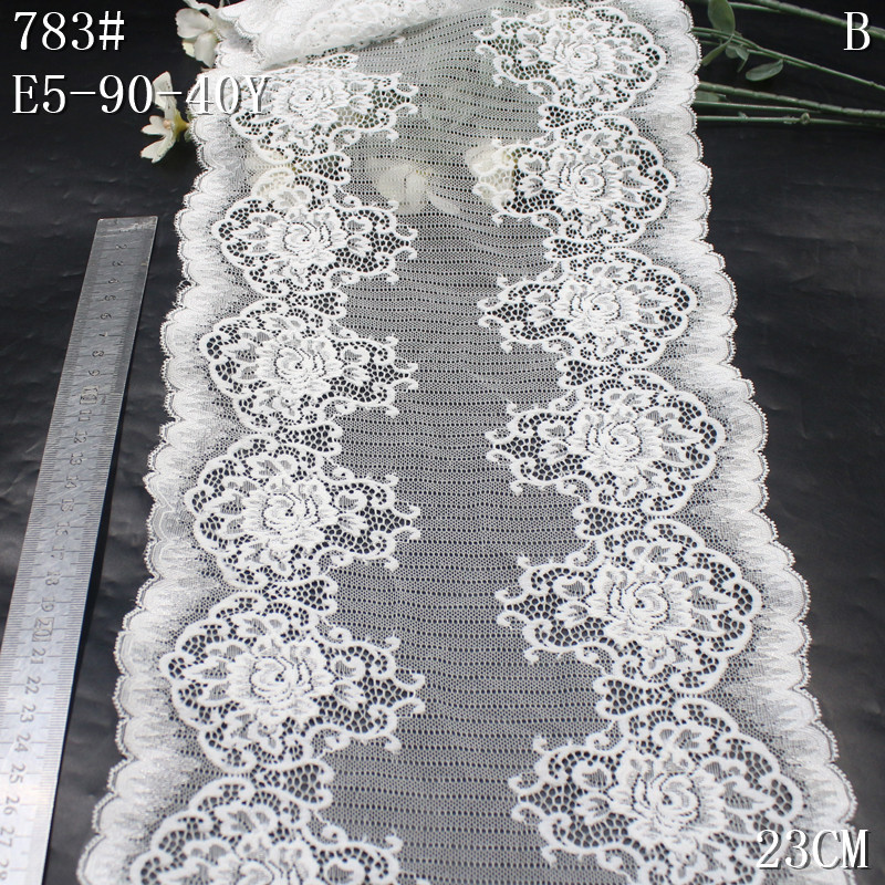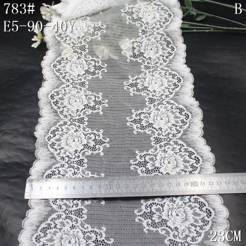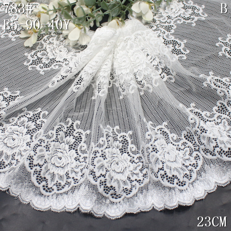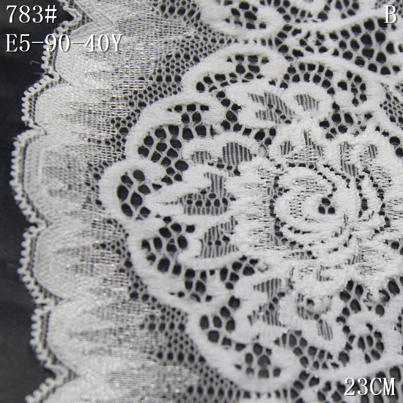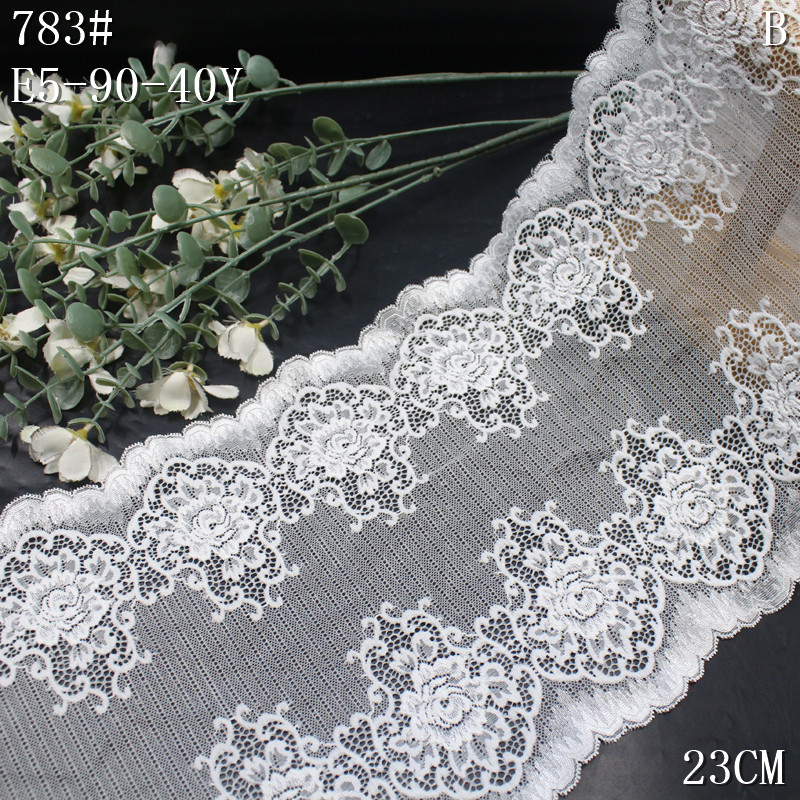 Its balanced elasticity and delicate detailing make it ideal for designs that require both decorative appeal and functional comfort.