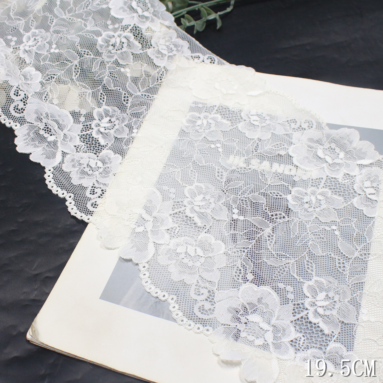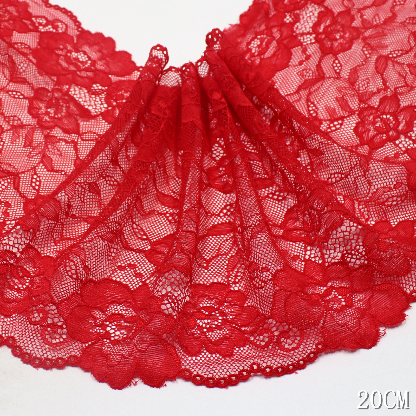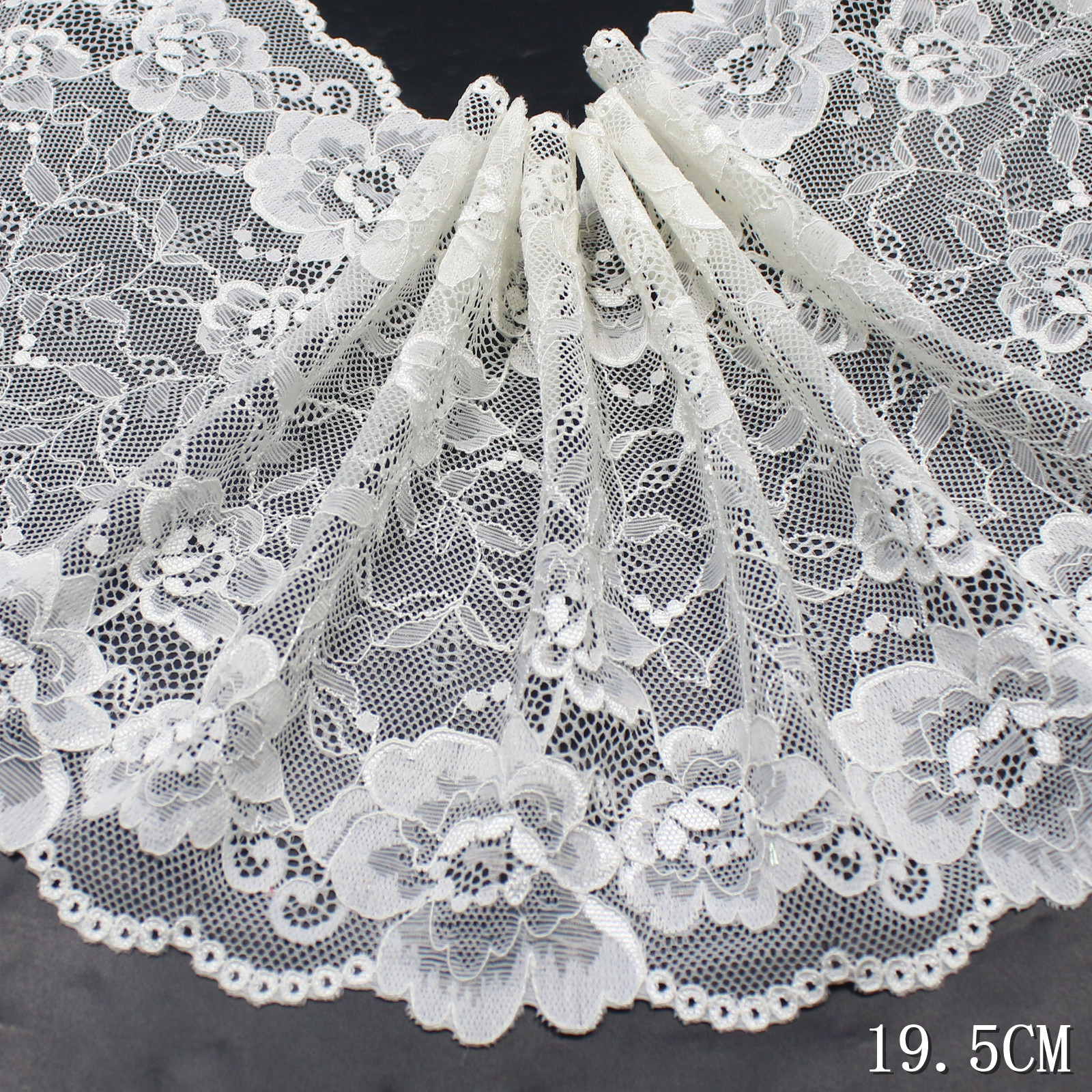 With a width of approximately 20 cm, this lace trim is suitable for both garment decoration and elegant design details.