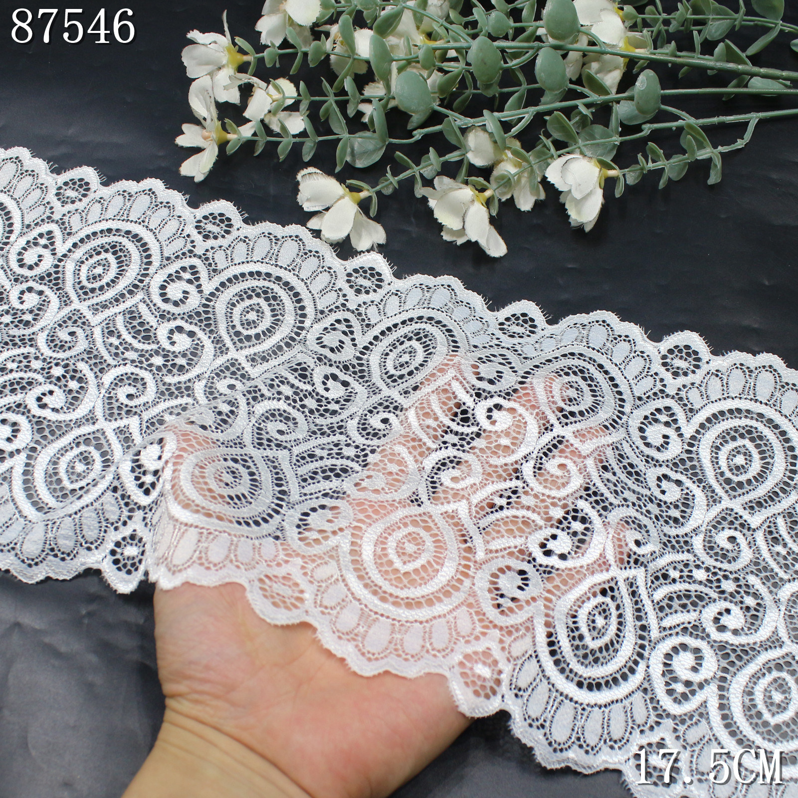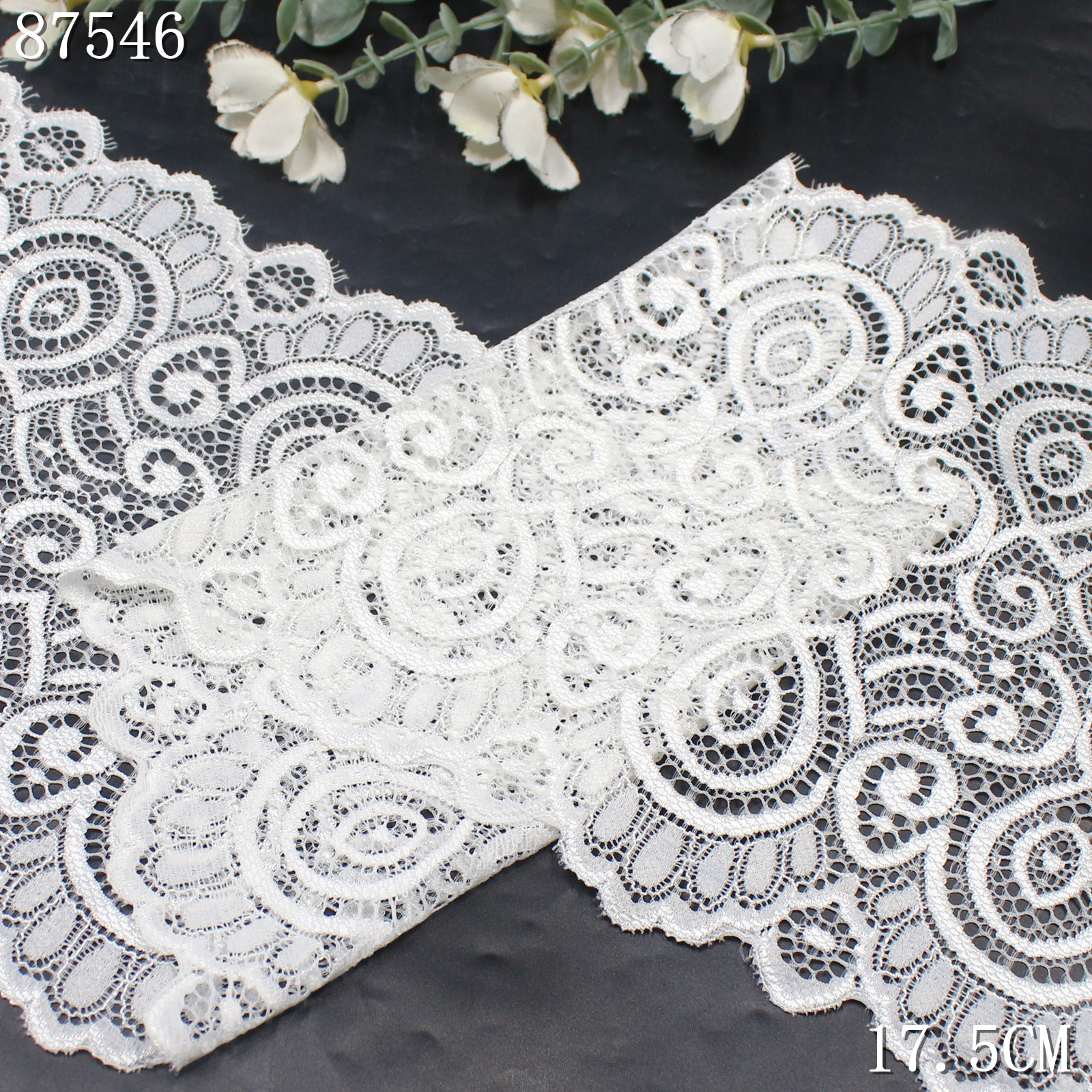 Constructed on a high-elastic lace base, it offers excellent stretch and recovery performance, ensuring flexibility and comfort. The material is breathable, soft to the touch, and maintains its shape after repeated use.