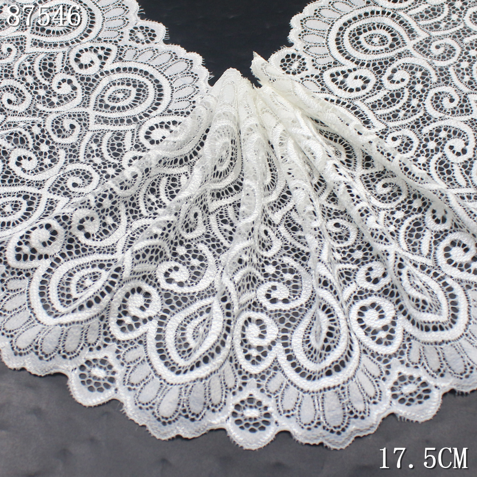 With a width of 17.5 cm, the pattern is well-balanced and suitable for both detailed trims and wider decorative applications.
