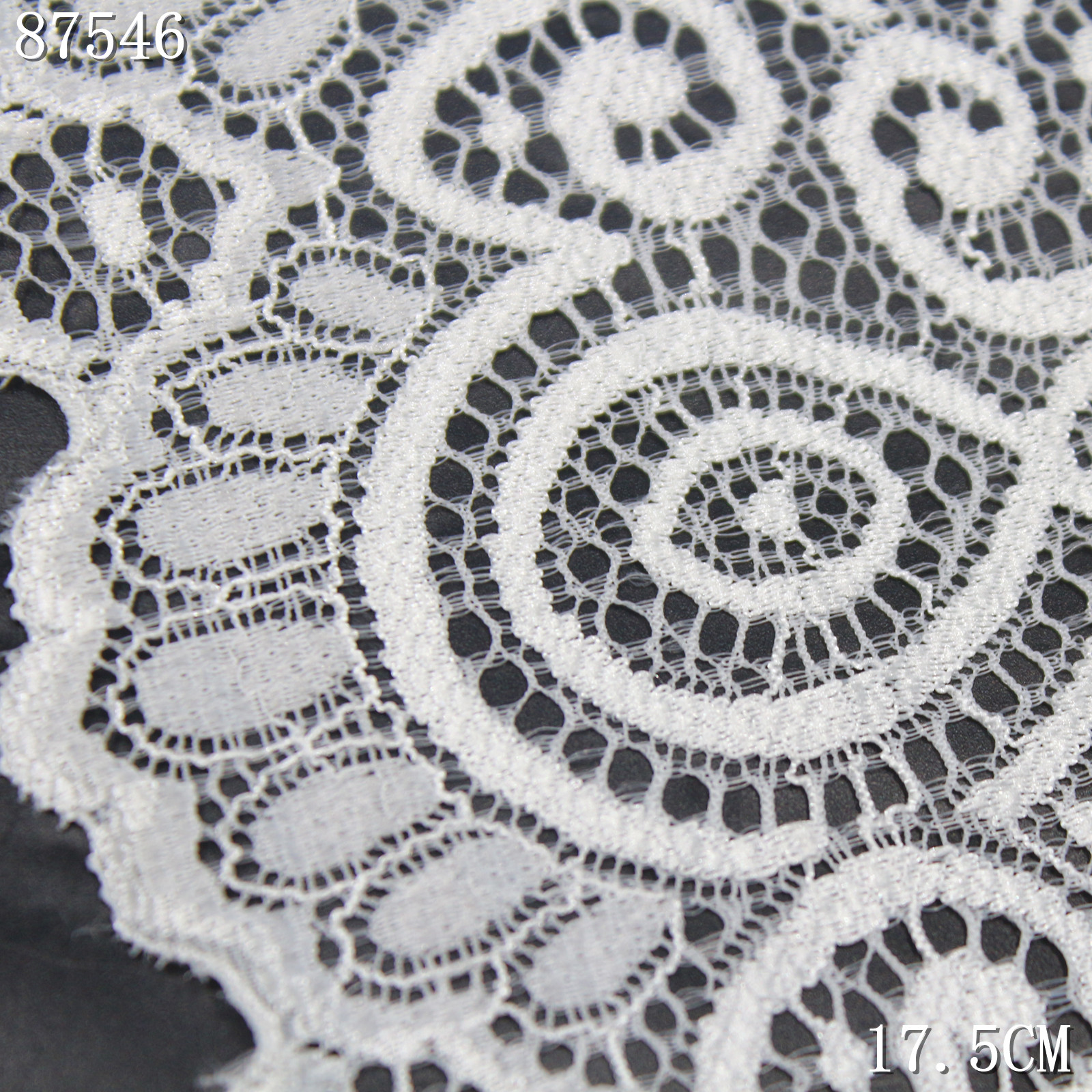 The lace is finished with a soft scalloped edge, enhancing its decorative appeal with a smooth and graceful outline.