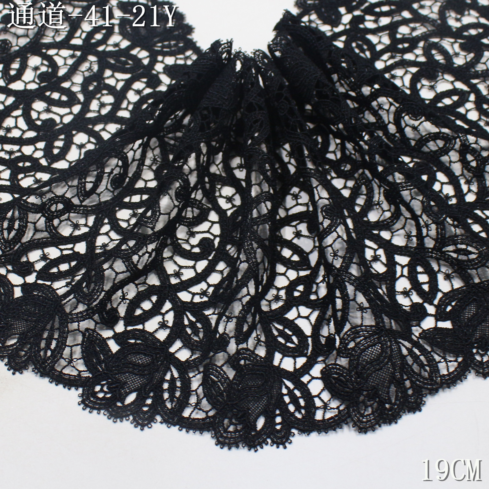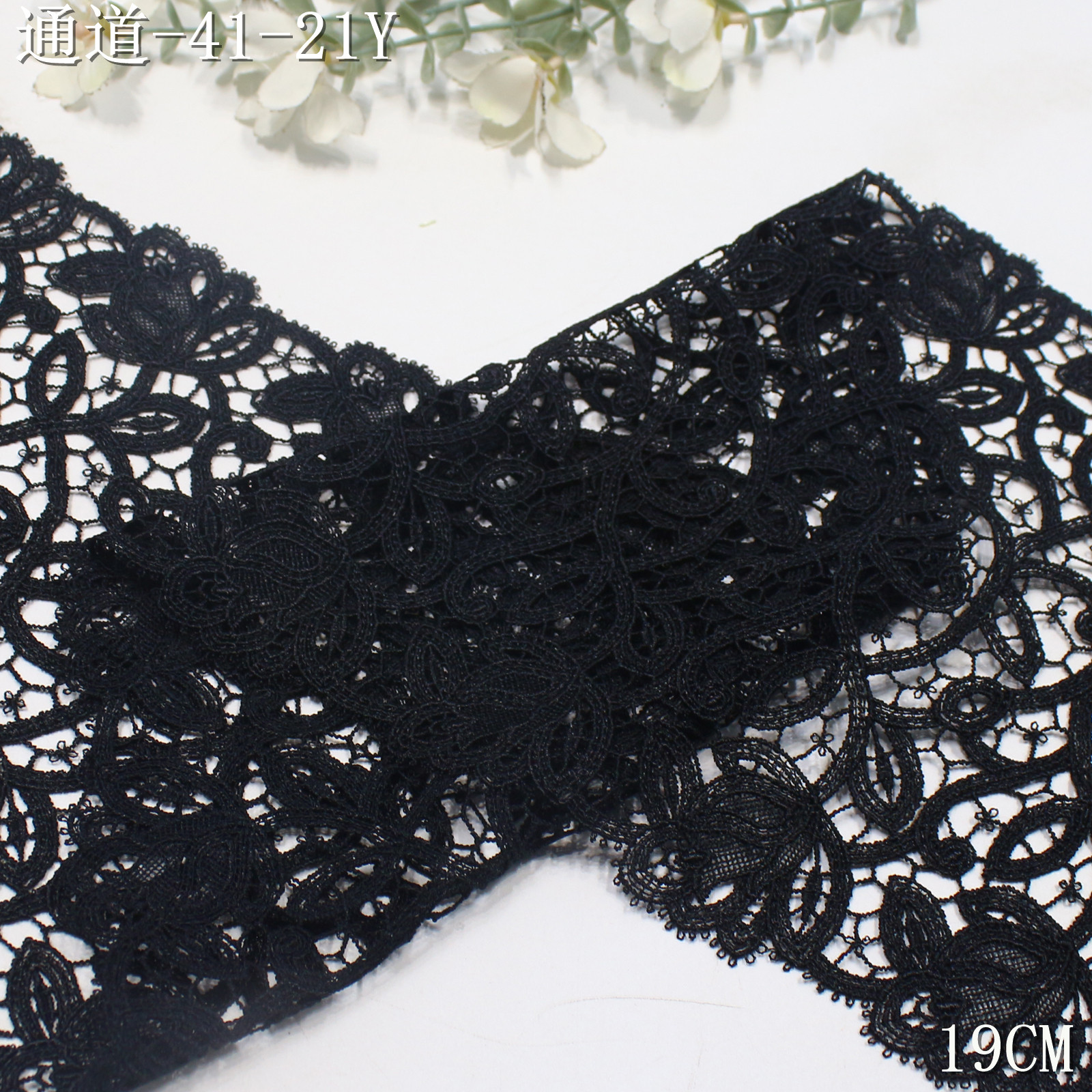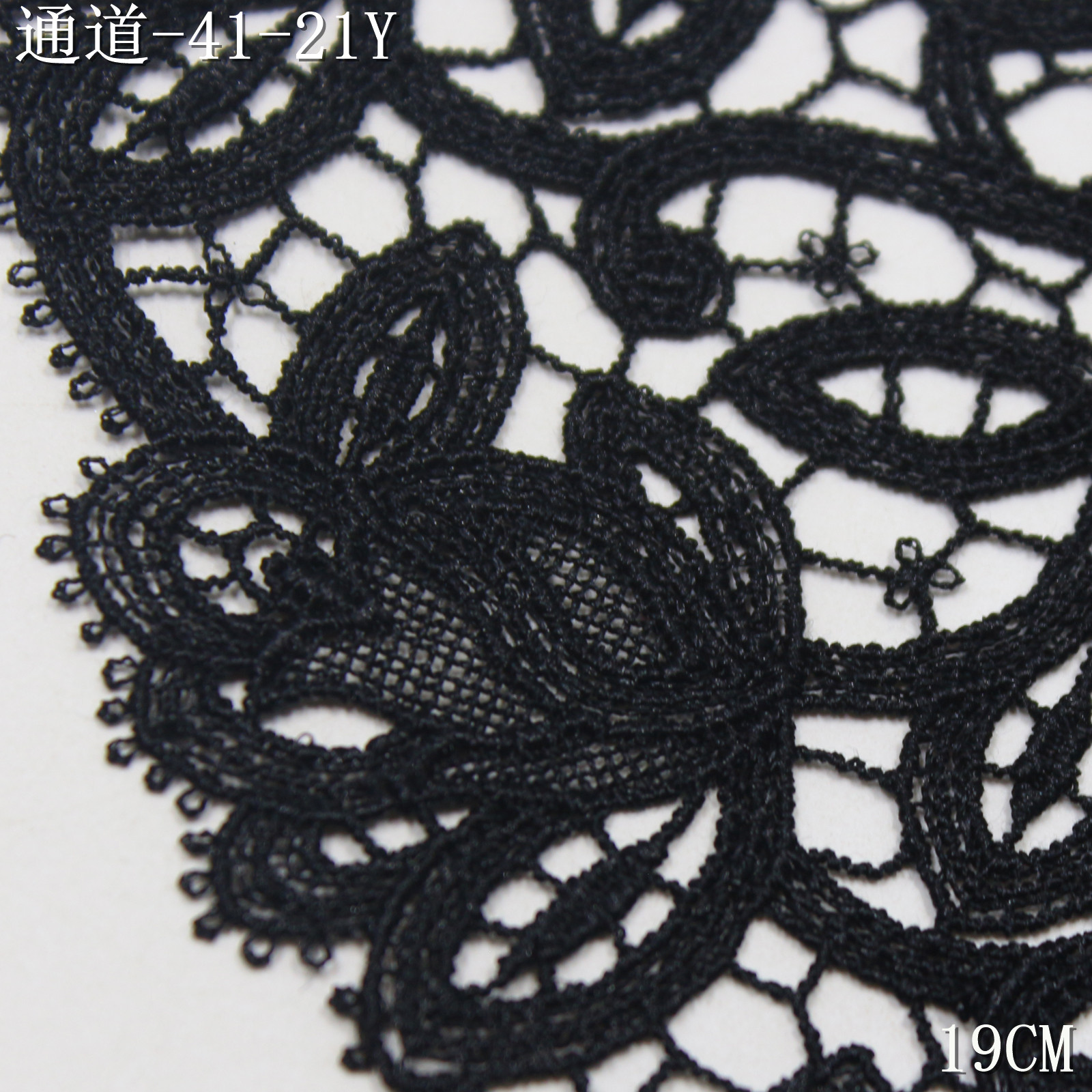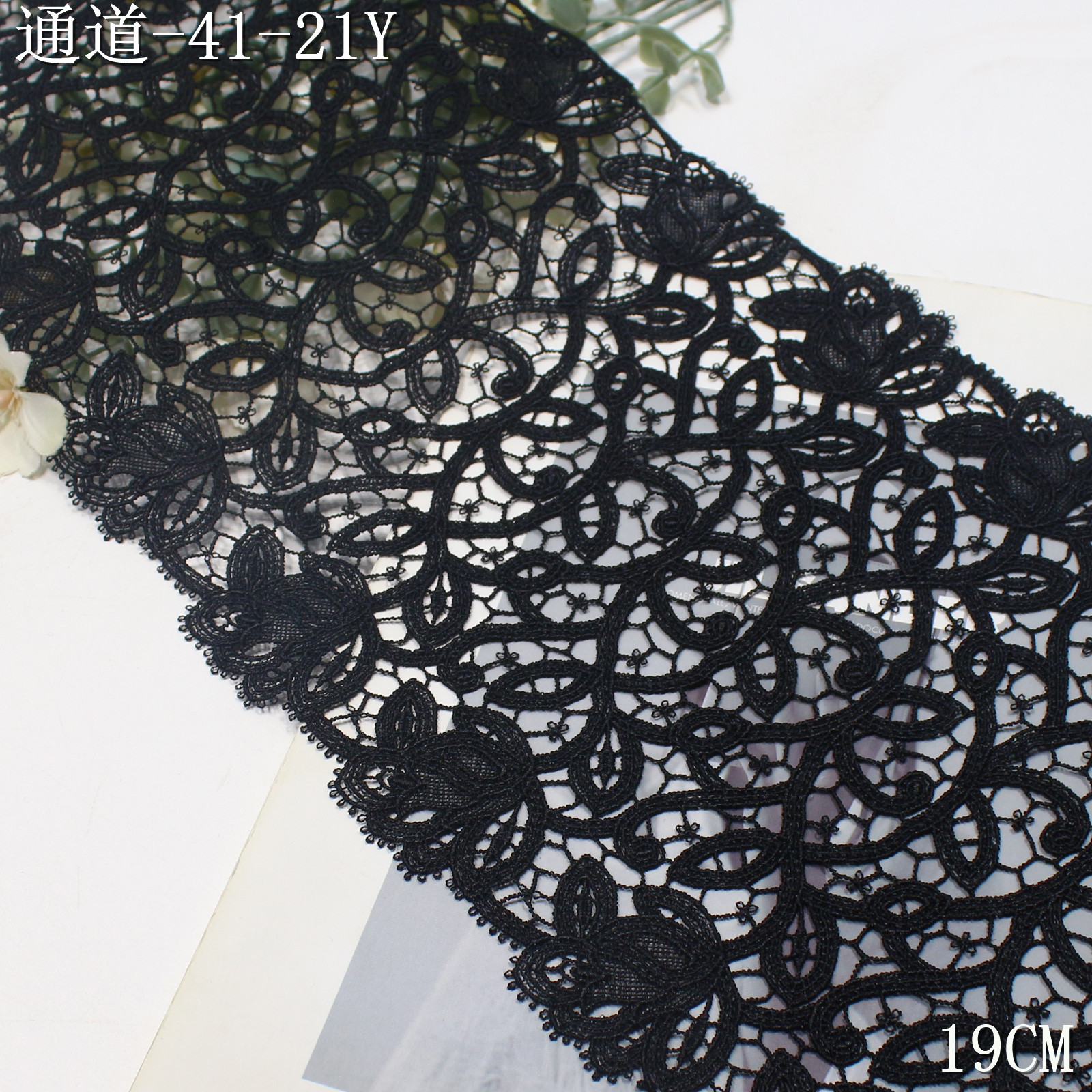 The edges are finished with delicate beaded detailing, giving the lace a refined and dimensional outline. The 19 cm width allows the design to appear open, flowing, and visually striking.